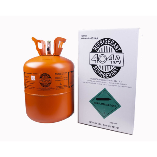 Its main application is new plants for medium and low refrigeration temperatures. The theoretical cooling capacity is 5% lower than the R-502 at evaporation temperatures equal to -40ºC. The coefficient of performance (COP) is between about 5 and 8% less than with R-502. If overheating increases, the R-404A COP may be higher than that of R-502. In the case of the retrofits of R-502 and its HCFC substitutes (R-408A, DI-44), it is necessary to eliminate 95% of original mineral oil or alkylbenzene, replacing it with an oil based on polyol esters, change the dryer filter, expansion valve, rubber O-rings with plastic ones and in some cases oversize the condenser. If it is used as an R-22 retrofit, it will also be necessary to replace the safety valves and other calibrated elements according to the R-22 pressures.